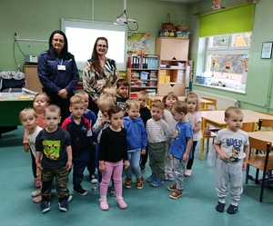 Kontynuujemy spotkania w szkołach/przedszkolach z najmłodszymi mieszkańcami powiatu ostrowskiego. Podczas wizyt rozmawiamy o zasadach bezpiecznego przechodzenia przez ulicę, zasadach ruchu drogowego dot. pieszych i rowerzystów oraz nr alarmowym 112. Dodatkowo rozmawiamy o podstawach dobrych relacji z rówieśnikami zarówno w domu jak i poza nim. Ze starszymi dziećmi poruszane są tematy zwiazane z odpowiedzialnością karną nieletnich oraz hejcie i cyberzagrożeniach.