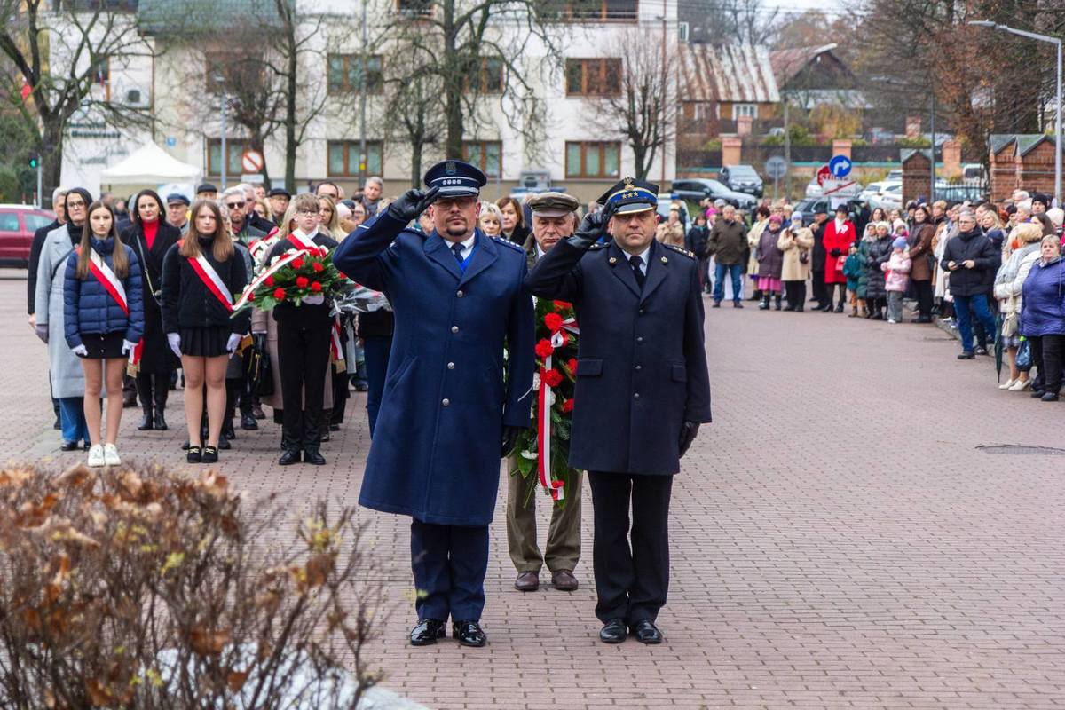 Uroczyste obchody z okazji 107 rocznicy odzyskania przez Polskę Niepodległości z udziałem I Z-cy Komendanta Powiatowego Policji w Ostrowi Mazowieckiej nadkom. Tomasza Orłowskiego