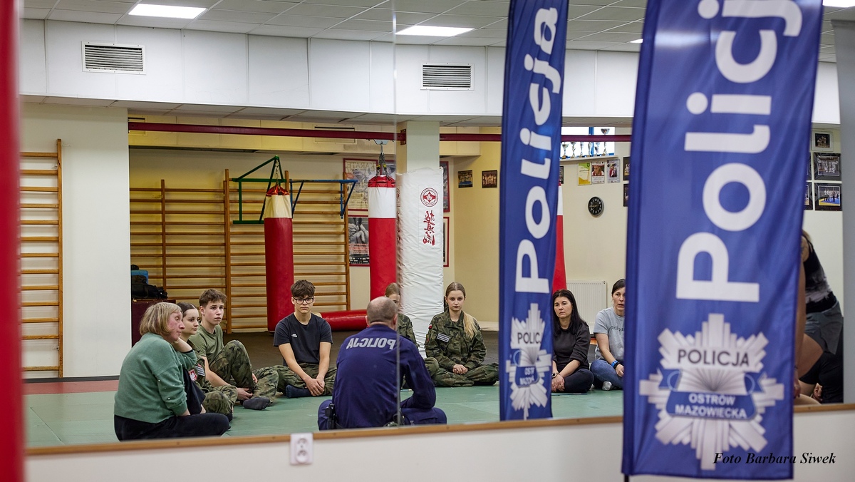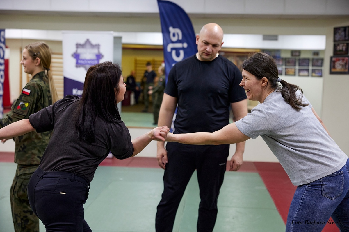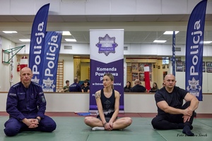 Kolejną niespodziankę przygotowali policjanci z wydziału prewencji. Na zaproszenie MOSiR w Ostrowi Mazowieckiej przeprowadzili zajęcia podczas których uczestniczki poznały chwyty obezwładniające stosowane podczas samoobrony w niebezpiecznych sytuacjach. Dodatkowo policjanci przygotowali słodkie upomniki oraz odblaski dla zwiększenia bezpieczeństwa Pań - pieszych na jezdni. W zajęciach policjantów wspierali uczniowie klasy mudnurowej z ZS nr 1 im.rtm.W.Pileckiego w Ostrowi Mazowieckiej za co dziękujemy.