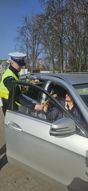 Wczoraj obchodzono Dzień Kobiet. Za oknem była piękna wiosenna pogoda. Ostrowscy policjanci z ruchu drogowego przygotowali małą niespodziankę dla Pań - pieszych, pasażerek i kierujących. Mundurowi wręczali Paniom tulipany oraz słodkie upominki dołączając do nich życzenia wszystkiego co najlepsze.