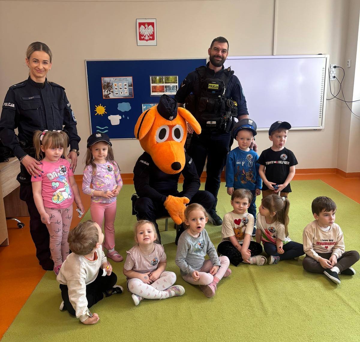 Wczoraj w Przedszkolu Miejskim Nr 3 w Ostrowi Mazowieckiej przy ul. A.Krajowej odbyła się wizyta mł.asp. Emilii Podbielskiej z Zespołu ds. Profilaktyki Społecznej, Nieletnich i Patologii oraz dwójki małkińskich policjantów pt. "Poznajemy zawody". Przedszkolaki dowiedziały się w jakich sytuacji należy wybierać nr alarmowy 112 a także poznały zasady ruchu drogowego w kwestii bezpiecznego przechodzenia przez jezdnię, jazdy rowerem, podróży autem oraz używaniem elementów odblaskowych. Ważnym punktem spotkania z dziećmi jest zawsze rozmowa nt. ostrożności w kontaktach z obcą osobą. Policjanci opowiadali też o zadaniach jakie na co dzień wykonują. Dzieci odwiedził też ich ulubieniec czyli Ostrowski Lisek - maskotka policyjna.