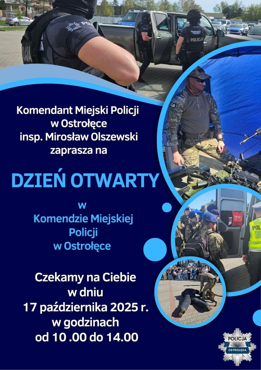 Marzy Ci się praca w Policji? Chciałbyś się dowiedzieć z pierwszej ręki, jak wygląda codzienność policyjnych specjalsów, a może kryminalnych, technika kryminalistyki, bądź funkcjonariuszy drogówki? Nic prostszego - zapraszamy Cię na Dzień Otwarty w Komendzie Miejskiej Policji w Ostrołęce! Kiedy i gdzie? 17 października br. (najbliższy piątek) siedziba ostrołęckich policjantów przy ul. J. Korczaka 16, w godz.10-14. Przygotowaliśmy mnóstwo atrakcji, pokazy różnych służb, także policyjnego sprzętu. Nie może Cię tu zabraknąć! Odpowiemy na wszystkie pytania dotyczące całej procedury naboru do służby w Policji. Szczególne zaproszenie kierujemy do uczniów klas mundurowych, które powstały w tym roku w Zespole Szkół Zawodowych nr 2 i II Społecznym Liceum Ogólnokształcącym w Ostrołęce.