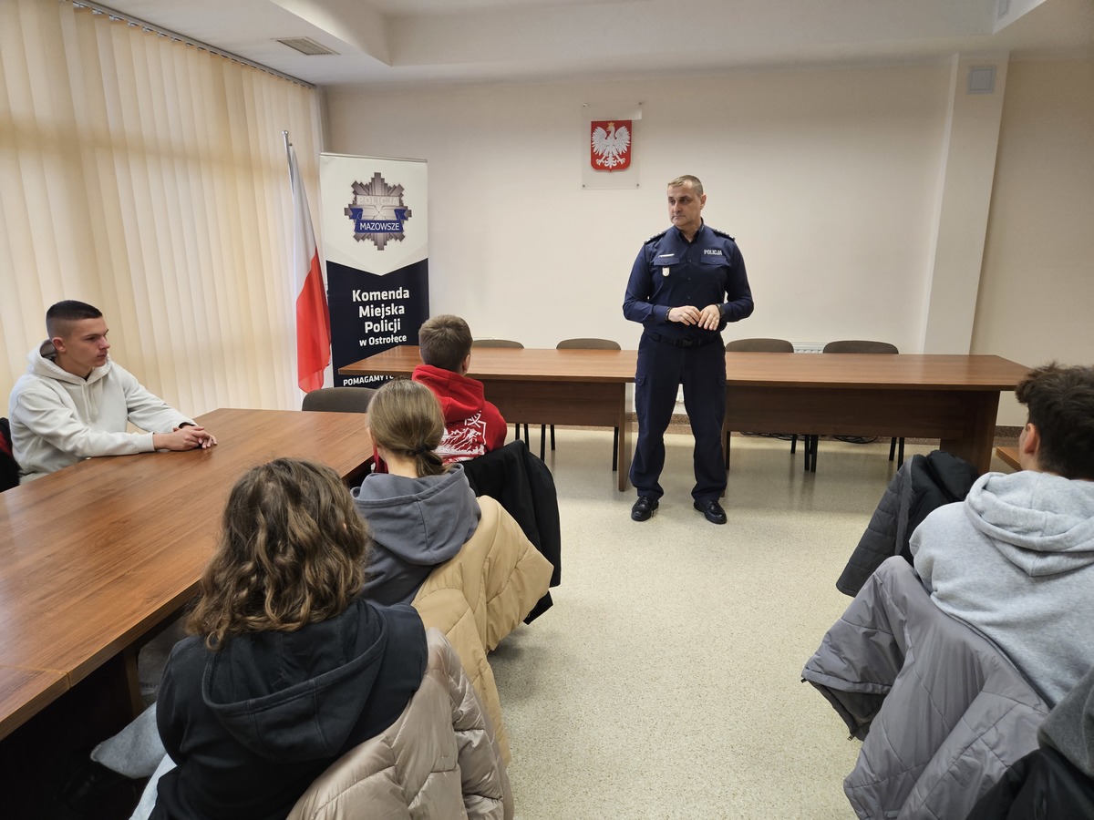 Policjanci z Komendy Miejskiej Policji w Ostrołęce przeprowadzili cykl zajęć dla uczniów nowo utworzonych klas mundurowych. Spotkania odbyły się w ramach „Dnia z Prewencją”, a ich celem było przybliżenie młodzieży specyfiki policyjnej służby, ustawowych zadań policji oraz możliwości zawodowych, jakie oferuje policyjna służba. W ramach działań uczniowie odbyli prelekcje ze wszystkimi Naczelnikami Wydziałów pionu Prewencji w ostrołęckiej jednostce, którzy w ciekawy sposób przedstawili specyfikę policyjnej służby w kierowanych przez nich komórkach organizacyjnych.