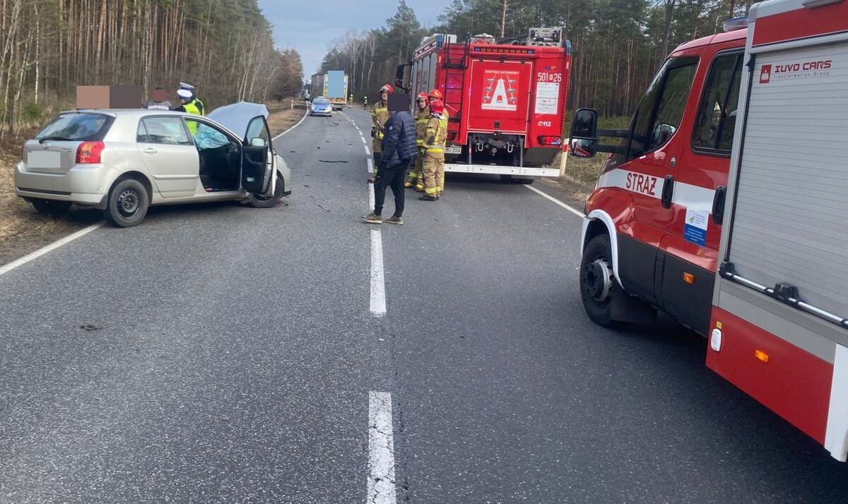 Ze wstępnych ustaleń funkcjonariuszy wynika, że kierujący samochodem marki Toyota, rozpoczynając manewr wyprzedzania, doprowadził do zderzenia z jadącą z przeciwka ciężarówką. Kierowca Toyoty z obrażeniami ciała został przetransportowany do szpitala. Podróżujący z nim pasażer nie odniósł obrażeń.