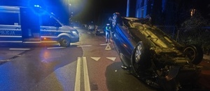 Kolizja zakończona dachowaniem - apelujemy o ostrożność