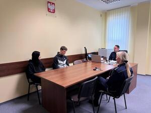 „Dzień z Prewencją” - ostrołęccy policjanci spotkali się z uczniami klas mundurowych w swojej siedzibie