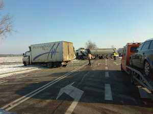 Dziś rano doszło do wypadku drogowego z udziałem dwóch pojazdów ciężarowych. W ich wyniku jedna osoba trafiła do szpitala. Kierowcy ciężarowego dafa, który zignorował znak STOP policjanci zatrzymali prawo jazdy. Prosimy o dostosowanie prędkości do aktualnych warunków drogowych.