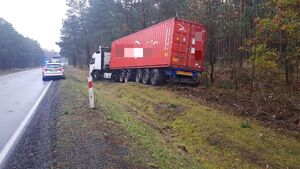 Tag Kierowca ciężarówki stracił panowanie nad pojazdem - ostrołęcka policja apeluje o ostrożność