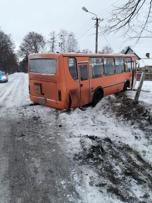 Zdarzenie drogowe z udziałem szkolnego autobusu - ostrołęccy policjanci proszą o dostosowanie się do aktualnych warunków na drodze