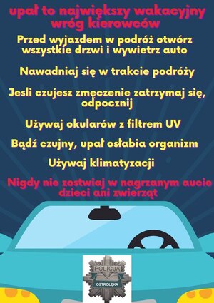 Jeździsz autem w upał? Rób to z rozwagą! - ostrołęccy policjanci ostrzegają
