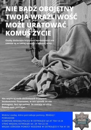 Ostrołęccy policjanci połączyli siły Miejski Zakład Komunikacji Sp. z o.o. w Ostrołęce, aby wspólnie kontynuować działania skierowane na zapewnienie bezpieczeństwa osobom narażonym na wychłodzenie organizmu. Dzięki nawiązanej współpracy w autobusach miejskich zostały umieszczone informację dotyczące działań w tym zakresie oraz numery telefonów do służb i instytucji, które udzielają pomocy osobom bezdomnym oraz mieszkającymi samotnie.