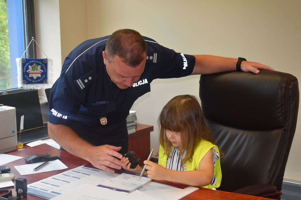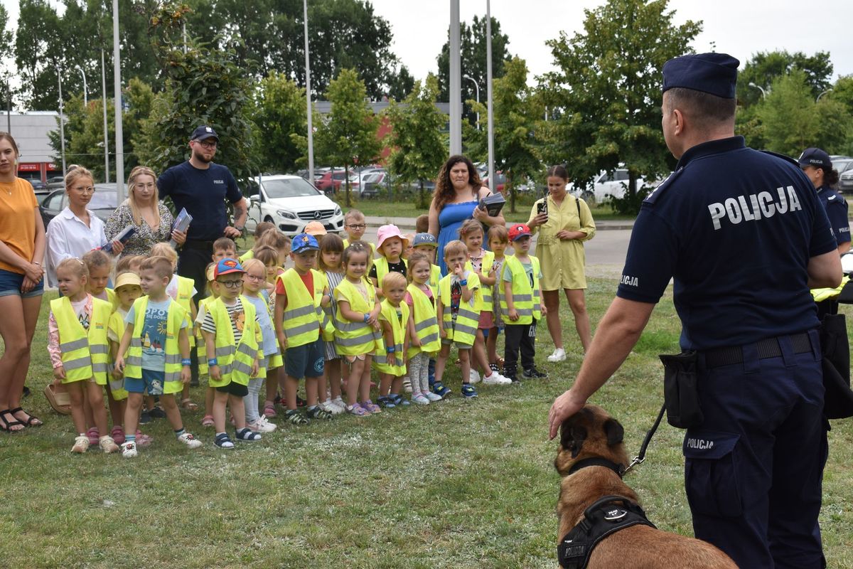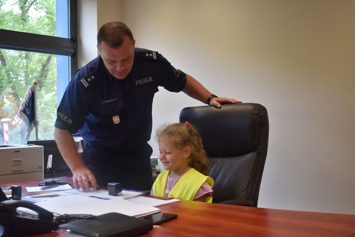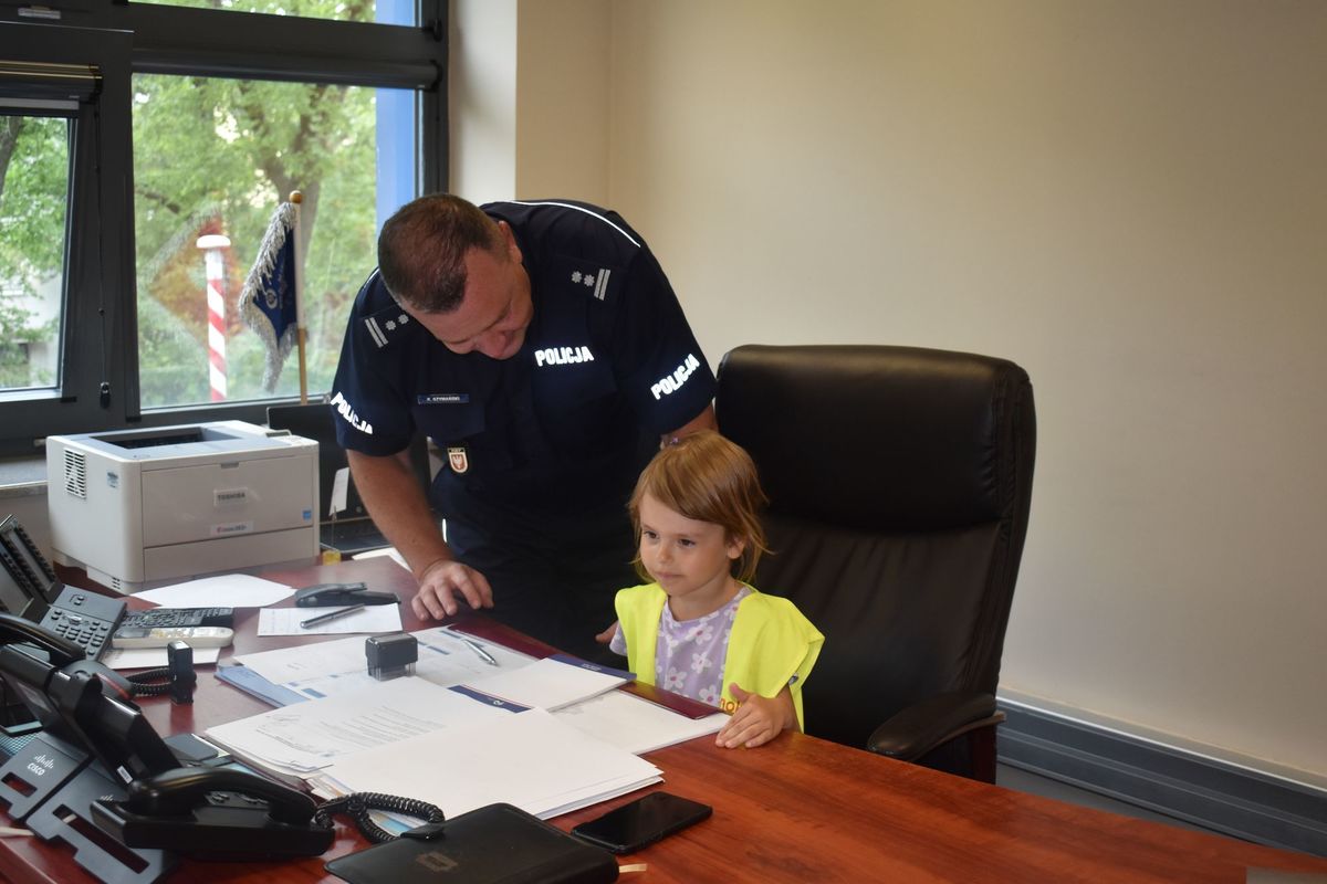 W Dniu Święta Policji Komendę Miejską Policji w Płocku odwiedzili najmłodsi z Przedszkola Pinokio w Płocku. Przedszkolaków osobiście przywitał mł. insp. Krzysztof Szymański, p.o. Komendanta Miejskiego Policji w Płocku. Wizyta rozpoczęła się w gabinecie komendanta, gdzie wszyscy chętni mogli zrobić sobie pamiątkowe zdjęcie oraz usiąść w fotelu szefa płockiej komendy. Z okazji naszego święta, w prezencie dzieci przygotowały przepiękny plakat oraz złożyły życzenia wszystkim funkcjonariuszom. W podziękowaniu policjanci oraz pracownicy Policji podarowali swoim gościom upominki oraz przygotowali kilka atrakcji. Dzieci spotkały się z przewodnikiem psa, który wraz ze swoim czworonożnym partnerem wzbudził ogromne zainteresowanie. Mundurowi opowiedzieli o swojej pracy, chętni mogli przymierzyć elementy policyjnego umundurowania oraz obejrzeć z bliska policyjny motocykl i radiowóz.
