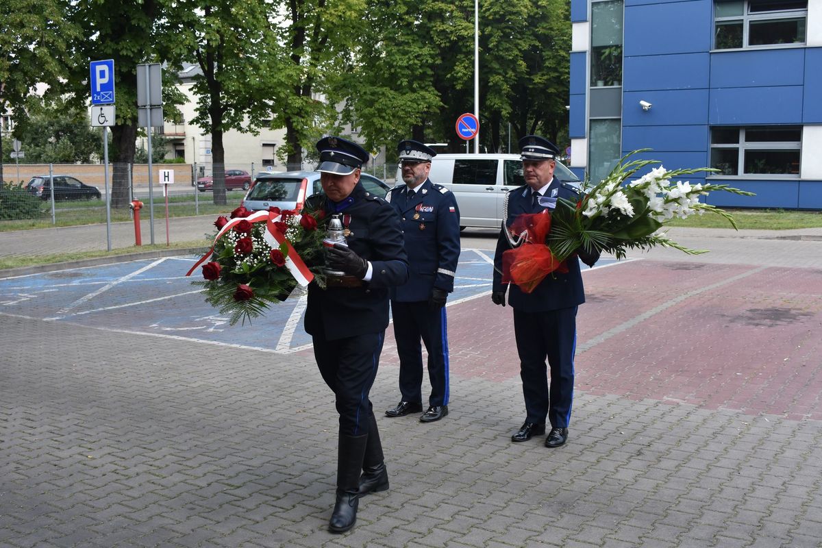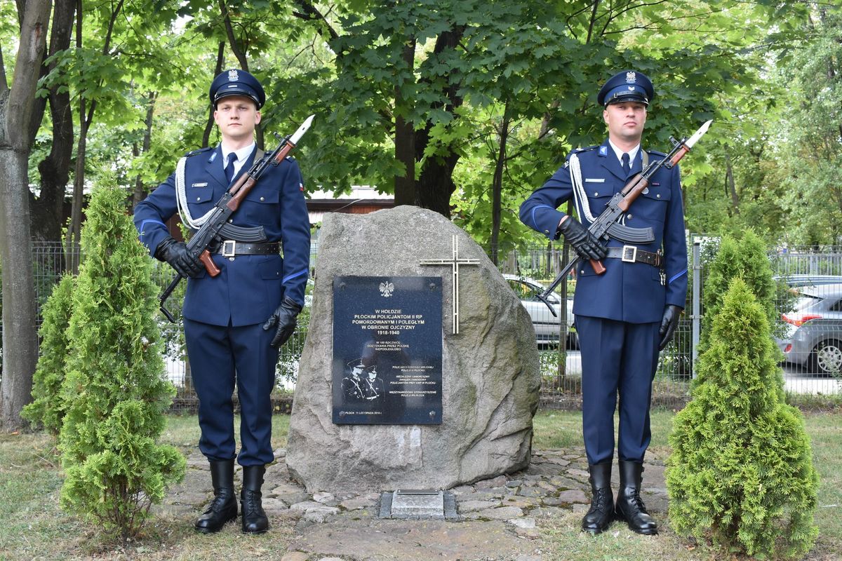 Przed uroczystością nadinsp. Waldemar Wołowiec Komendant Wojewódzki Policji z/s w Radomiu, mł.insp. Krzysztof Szymański Komendant Miesjki Policji w Płocku oraz asp.szt. w stanie spoczynku Adam Łaszczewski złożyli kwiaty oraz zapalili znicz przed obeliskiem, poświęconym płockim policjantom II RP pomordowanym i poległym w obronie Ojczyzny, w latach 1918 – 1939.