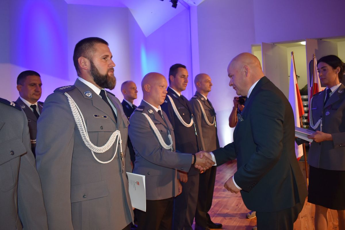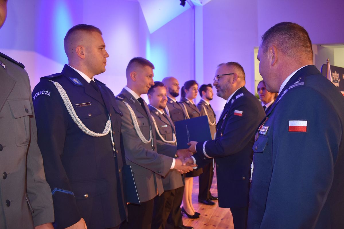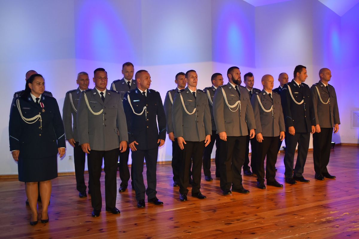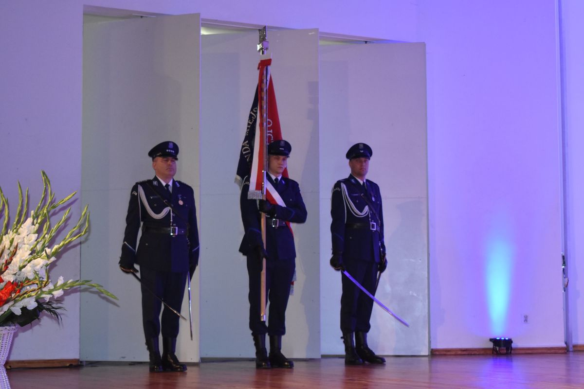 Zanim jednak to nastąpiło, mł.insp. Krzysztof Szymański przywitał zaproszonych gości oraz obecnych funkcjonariuszy i pracowników policji, podziękował policjantom za codzienne zaangażowanie i poświęcenie w realizację ustawowych zadań. Komendant nie zapomniał również o słowach uznania dla pracowników cywilnych. Przypomniał, jak ważną rolę pełni ich zaangażowanie w realizację zadań Policji.