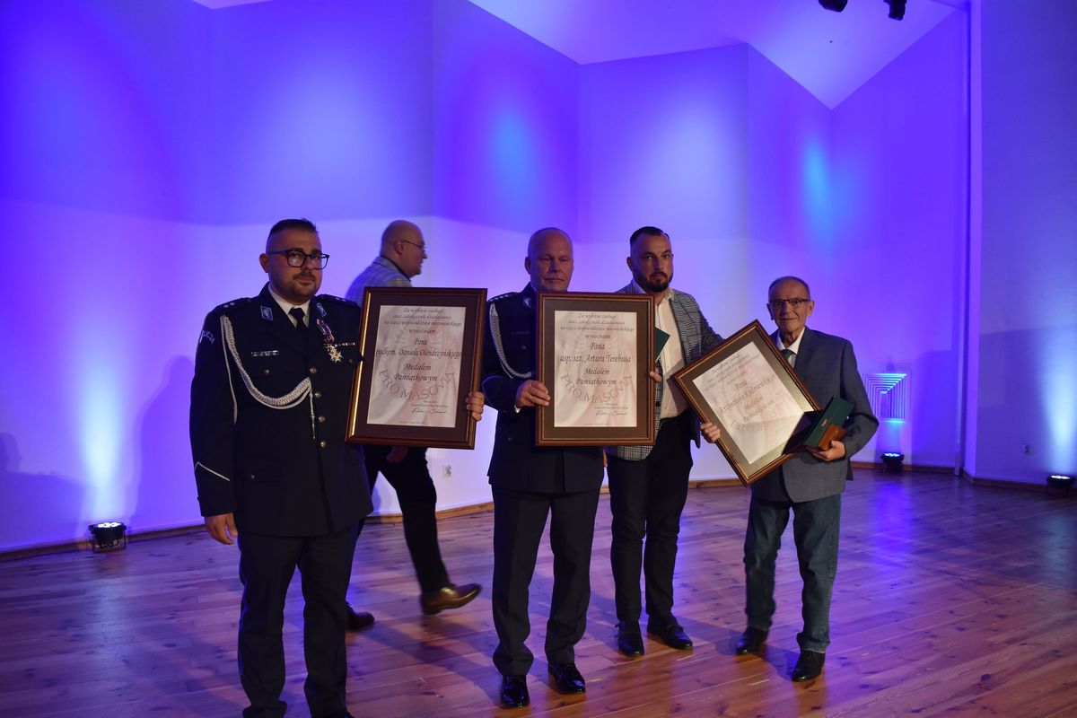 Kolejnym akcentem uroczystego apelu było wręczenie medali pamiątkowych „Pro Masovia” oraz wyróżnień nadanych przez Marszałka Województwa Mazowieckiego Adama Struzika. Medal Pamiątkowy „Pro Masovia” otrzymali: podkom. Daniel Olendrzyński Zastępca Naczelnika Wydziału Sztab, asp. sztab. Artur Terebus Naczelnik Wydziału Ruchu Drogowego oraz Pan Krzysztof Kuźniewski pracownik cywilny płockiej komendy. Medale oraz wyróżnienia wręczył Pan Tomasz Kominek Dyrektor Delegatury Urzędu Marszałkowskiego Województwa Mazowieckiego w Płocku oraz Pan Karol Krajewski Przedstawiciel Delegatury Urzędu Marszałkowskiego w Płocku.