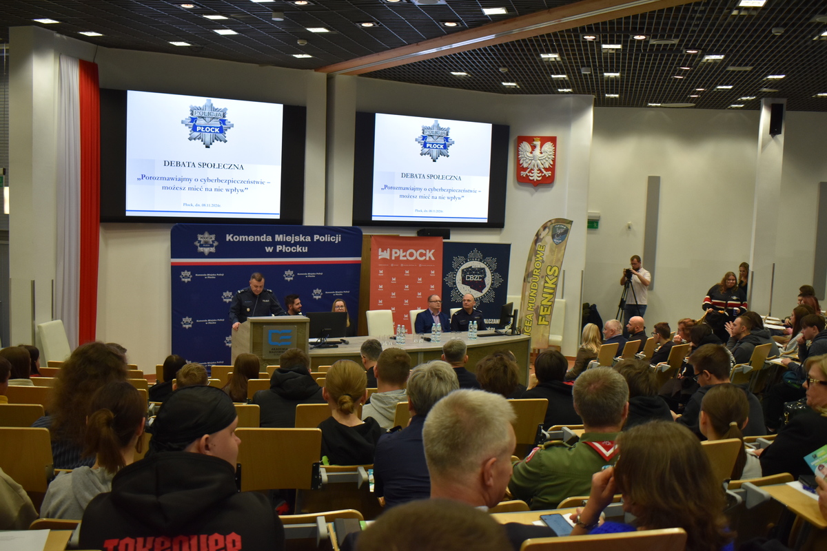 Debatę rozpoczął Komendant Miejski Policji w Płocku, mł. insp. Krzysztof Szymański, który przywitał uczestników. Następnie głos zabrał Pan Bogusław Sitarski Dyrektor Wydziału Bezpieczeństwa i Zarządzania Kryzysowego Urzędu Miasta Płocka. Następnie Pani Ewa Domańska Kierownik zespolu ds. ochrony dzieci i młodzieży przed zagrożeniami w internecie w Państwowym Instytucie Badawczym NASK oraz sierż. szt. Jan Suracki funkcjonariusz z Centralnego Biura Zwalczania Cyberprzestępczości Zarząd w Radomiu wygłosili bardzo ciekawe wykłady na temat cyberbezpieczeństwa, cyberzagrożeń oraz korzystania z internetu.