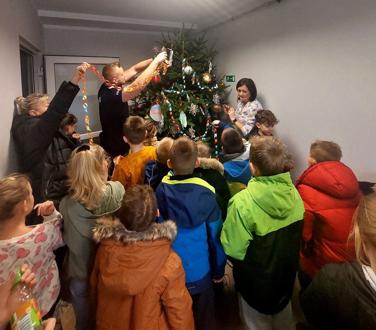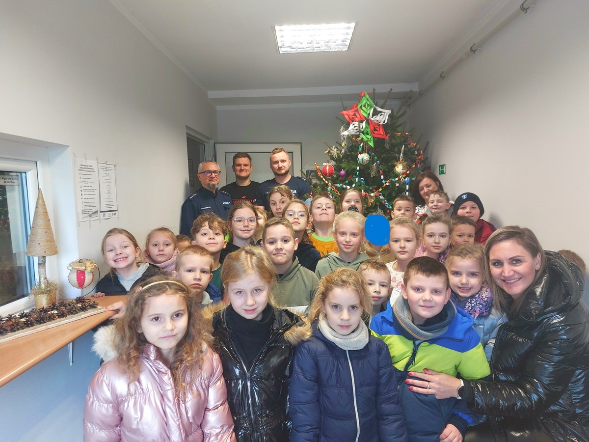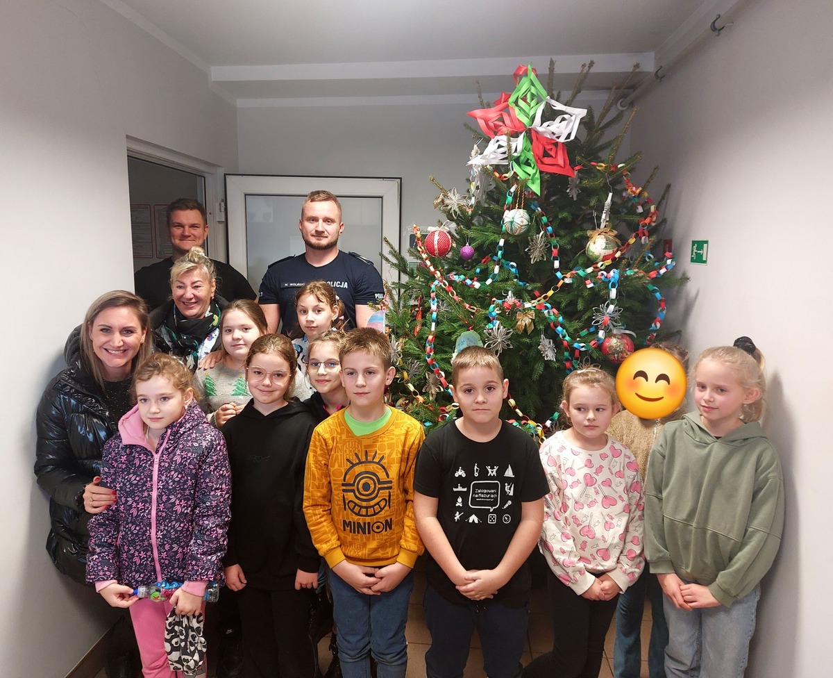 Tym razem spotkanie policjantów z dziećmi miało wyjątkowy charakter. Uczniowie ze Szkoły Podstawowej w Nowym Duninowie wspólnie z funkcjonariuszami udekorowali choinkę w budynku miejscowego posterunku.
