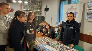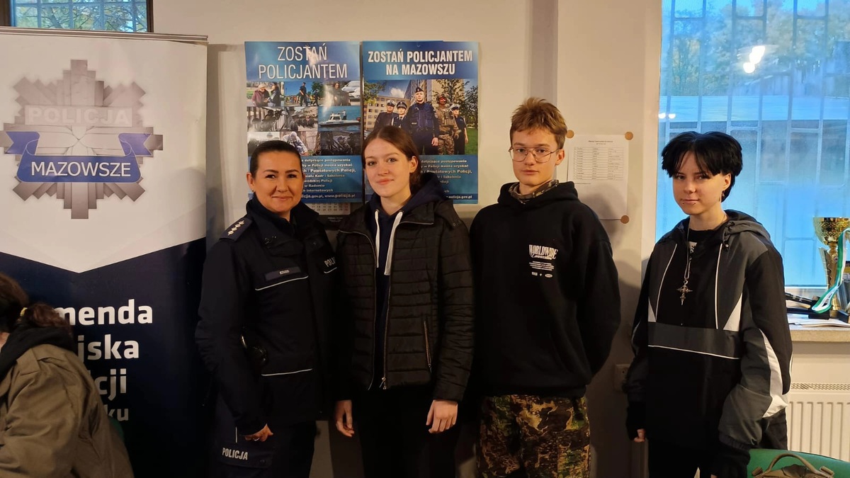 Podczas zawodów swoje stoisko przygotowali także przedstawiciele Komendy Miejskiej Policji w Płocku. Funkcjonariuszki zachęcały młodzież do wstąpienia w szeregi Policji, opowiadały o codziennej służbie oraz odpowiadały na pytania uczniów.
