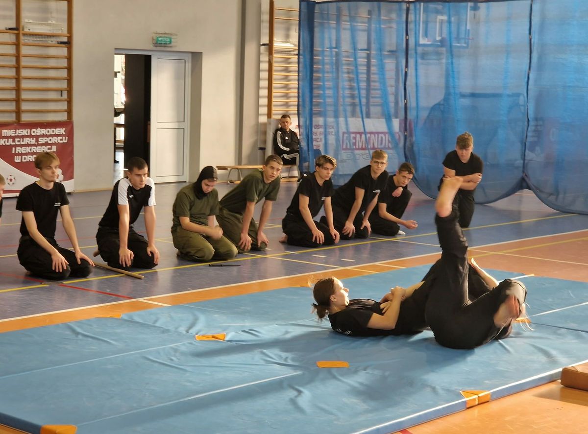 Jednym z miejsc gdzie powstał oddział jest Zespół Szkół Ponadpodstawowych w Drobinie. Uczniowie intensywnie przygotowują się do uroczystego ślubowania, które odbędzie się w przyszłym tygodniu. Podczas zajęć trenują elementy m.in. musztry. W zajęciach uczestniczył Koordynator Klas Mundurowych Komendy Miejskiej Policji w Płocku, podinsp. Tomasz Wyrembowski.