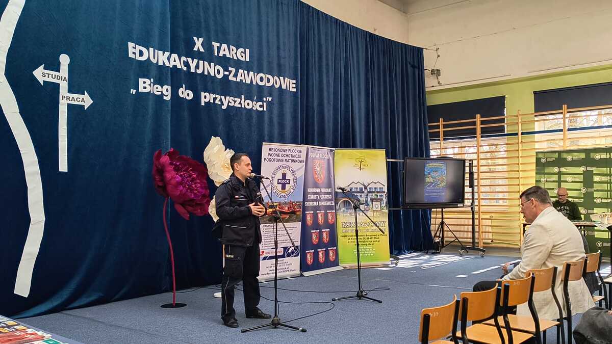 W miniony wtorek (10.03) w Zespole Szkół im. Leokadii Bergerowej w Płocku odbyły się X Targi Edukacyjno – Zawodowe pod nazwą " Bieg do przyszłości", skierowane do uczniów klas maturalnych. Targi pracy to doskonała okazja do spotkania z młodzieżą, która lada moment opuści mury szkoły i dokona wyboru własnej ścieżki zawodowej. Wśród licznych wystawców nie mogło zabraknąć przedstawicieli Policji, którzy promowali swój zawód. Przedstawiciele Komendy Miejskiej Policji w Płocku odpowiadali na wszelkie pytania dotyczące rekrutacji do służby, a także opowiadali o swojej pracy. Uczestnicy szkolnych targów pracy mogli dowiedzieć się gdzie należy złożyć odpowiednie dokumenty oraz jakie wymogi należy spełnić by móc nosić policyjny mundur.