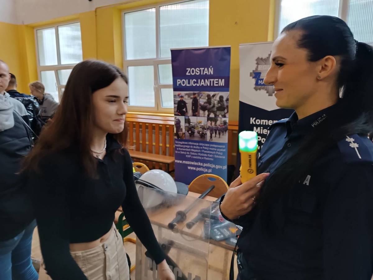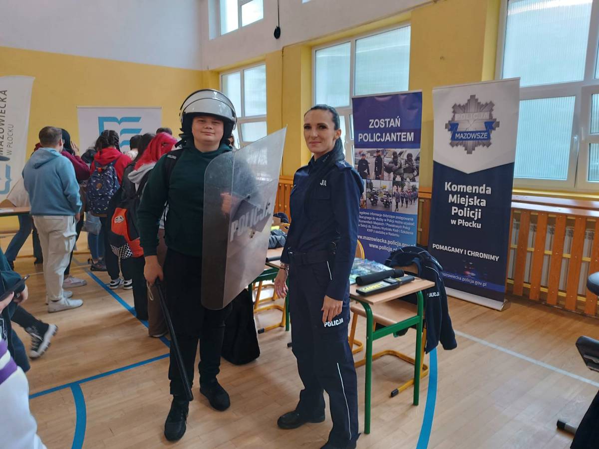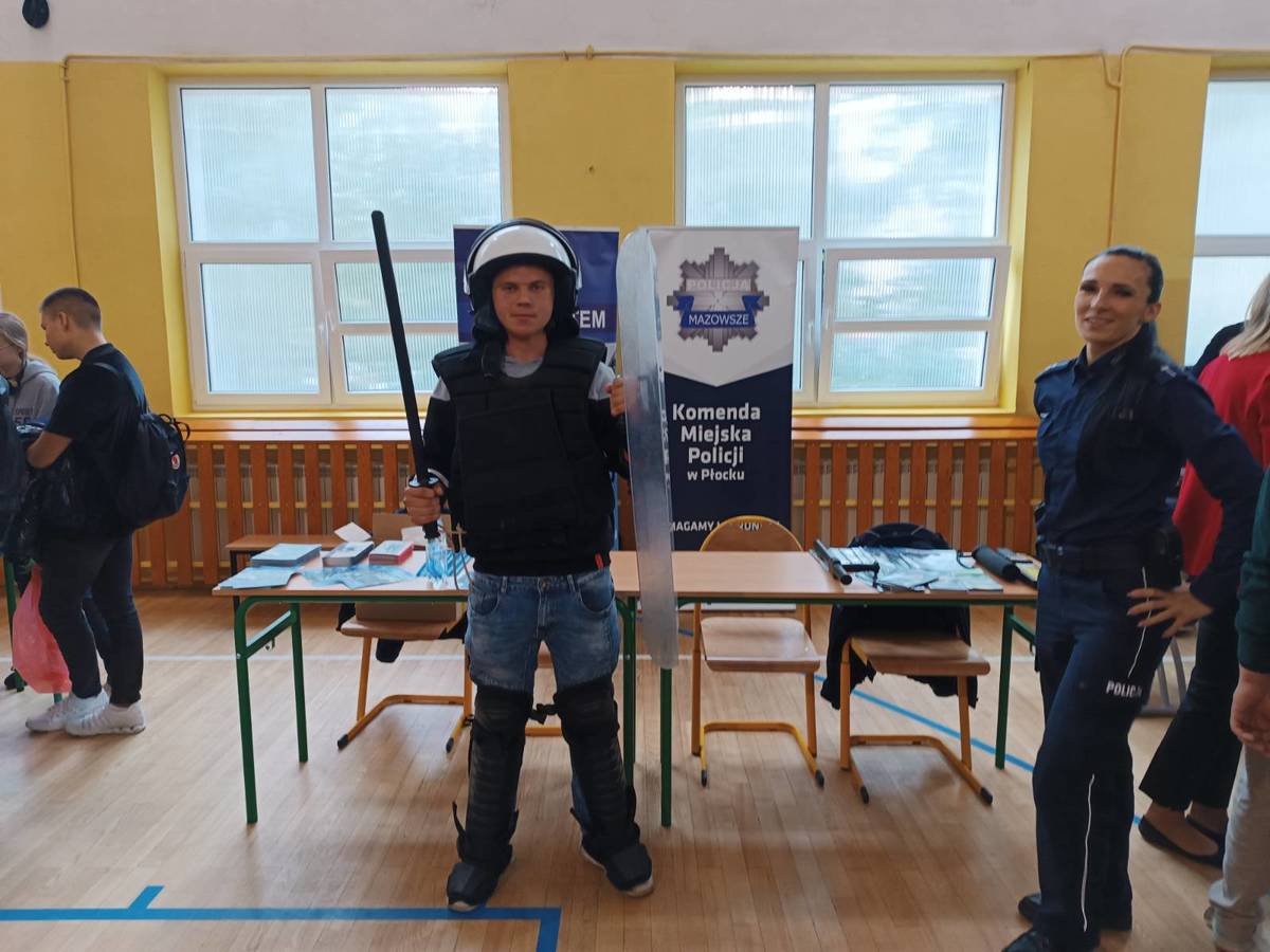 Policjanci z Wydziału Prewencji płockiej komendy uczestniczyli w wydarzeniu pn. „Wszyscy dbamy o bezpieczeństwo” zorganizowanym przez Zespół Szkól Usług i Przedsiębiorczości w Płocku. Mundurowi przygotowali stoisko promujące zawód policjanta.