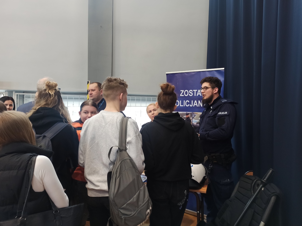 Przedstawiciele płockiej Policji po raz kolejny wzięli udział w XV Targach Pracy i Edukacji zorganizowanych w Zespole Szkół im. Jana Śniadeckiego w Wyszogrodzie. Stoisko przygotowane przez mundurowych cieszyło się zainteresowaniem wśród młodzieży, która już za chwilę stanie przed wyborem dalszej ścieżki życiowej. Uczniowie otrzymali kluczowe informacje na temat rekrutacji do służby w Policji oraz uzyskali odwiedź na wszystkie nurtujące pytania.