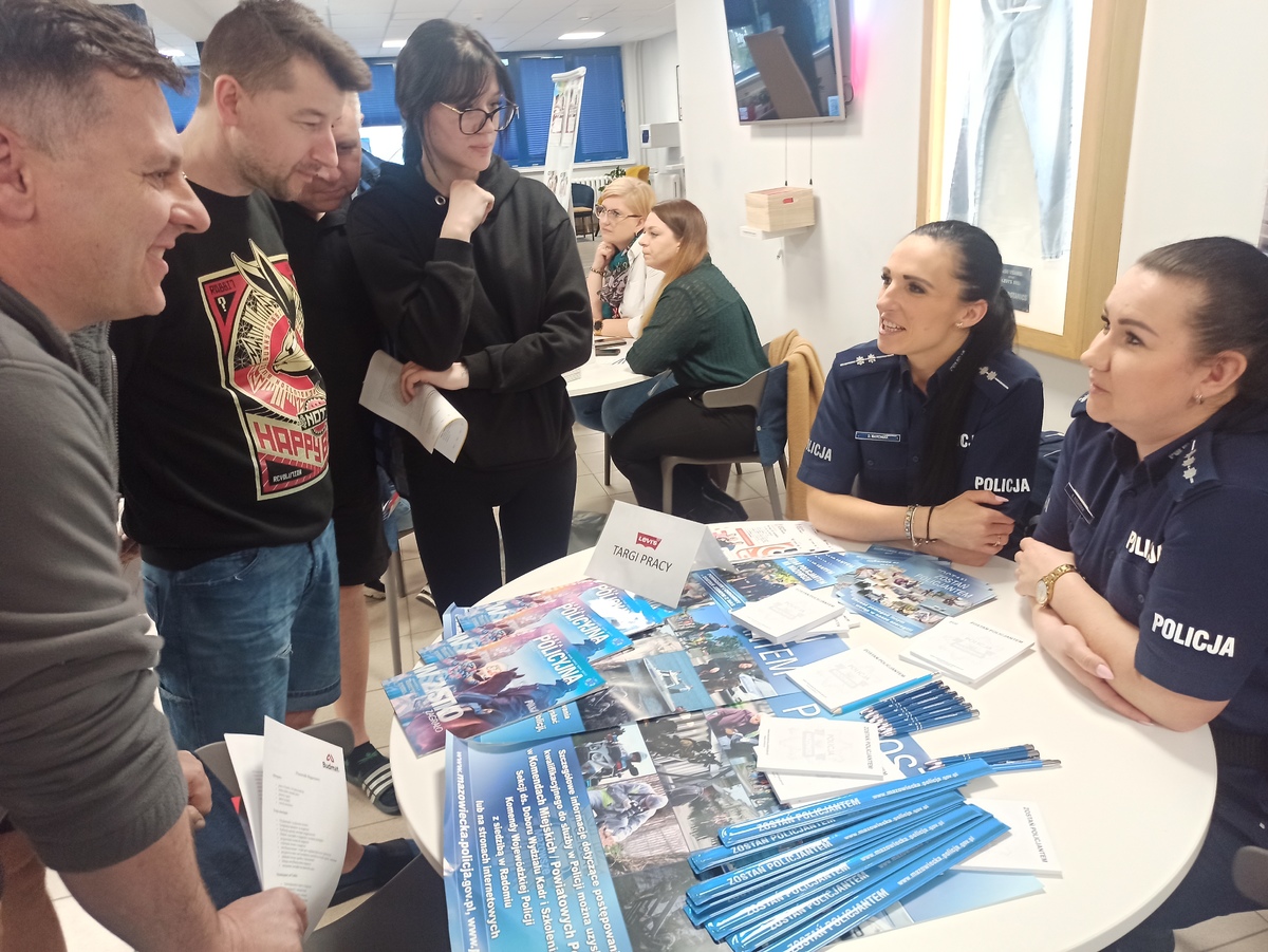 Wczoraj (17.04) w Levi Strauss Poland w Płocku odbyły się wewnętrzne targi pracy, w których udział wzięli przedstawiciele płockiej komendy. Stoisko mundurowych cieszyło się dużym zainteresowaniem. Dzielnicowi opowiedzieli jak wygląda rekrutacja do służby oraz odpowiedzieli na wszystkie nurtujące pytania.