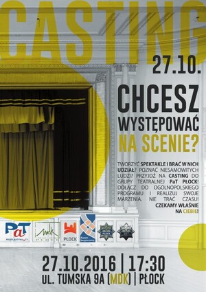 Chcesz realizować swoje marzenia a przy okazji dobrze się bawić, jesteś uczniem gimnazjum lub szkoły ponadgimnazjalnej i mieszkasz w Płocku – dołącz do społeczności PaT. W czwartek 27 października w Młodzieżowym Domu Kultury w Płocku przy ul. Tumskiej, odbędzie się casting do Płockiej Grupy PaT.