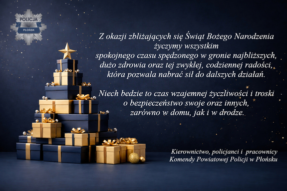 Z okazji Świąt Bożego Narodzenia kierownictwo, policjanci i pracownicy cywilni Komendy Powiatowej Policji w Płońsku składają życzenia zdrowia, radości i spokoju.