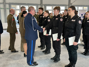 Uroczyste ślubowanie uczniów klas pierwszych oraz wręczenie aktów mianowania na wyższe stopnie kadetom klas mundurowych odbyło się dziś w Zespół Szkół im. Królowej Jadwigi w Czerwińsku nad Wisłą. W wydarzeniu uczestniczyli przedstawiciele Komendy Powiatowej Policji w Płońsku, która od wielu lat współpracuje ze szkołą przy kształceniu młodzieży w klasach policyjnych. Obecność funkcjonariuszy była wyrazem stałego zaangażowania płońskiej komendy w rozwój przyszłych kandydatów do służby. To partnerstwo od lat przekłada się na konkretne działania i wspólne inicjatywy.