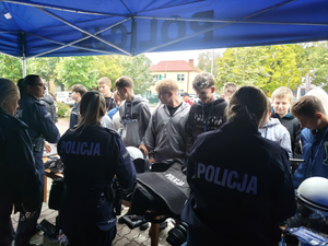 Nie zabrakło atrakcji dla najmłodszych. Dzieci i młodzież mogły wsiąść do radiowozu, przymierzyć kamizelki, kaski i obejrzeć wyposażenie, które na co dzień towarzyszy policjantom w służbie. Dorośli chętnie pytali o zasady rekrutacji i możliwości rozwoju zawodowego w Policji.