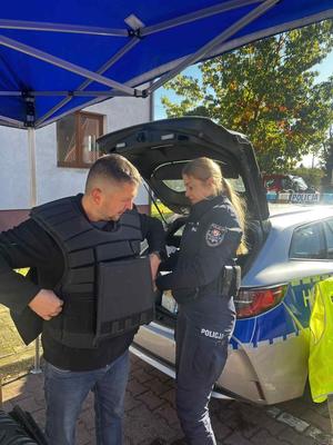 Stoisko płońskich policjantek cieszyło się dużym zainteresowaniem zarówno wśród najmłodszych, jak i dorosłych uczestników. Dzieci z entuzjazmem oglądały policyjny sprzęt, wsiadały do radiowozu i chętnie pozowały do zdjęć. Dorośli natomiast rozmawiali z funkcjonariuszkami o bezpieczeństwie w ruchu drogowym, zagrożeniach internetowych czy zasadach odpowiedzialnego zachowania.