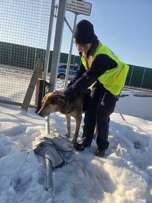Po chwili na miejsce wróciła osoba zgłaszająca. Kobieta poinformowała, że próbowała samodzielnie zatrzymać psa, a gdy się to nie udało, pojechała do pobliskiej miejscowości, by kupić smakołyki. Przekazała również policjantom koc, który miała w samochodzie, żeby ogrzać zwierzę. Dzięki jej pomocy, policjanci zwabili psa na pobocze i zabezpieczyli go w bezpiecznym miejscu. Okazało się, że to starszy, niewidomy pies, wyraźnie zagubiony i przestraszony. Na miejsce przyjechał pracownik schroniska z powiatu nowodworskiego, który przejął opiekę nad zwierzęciem.