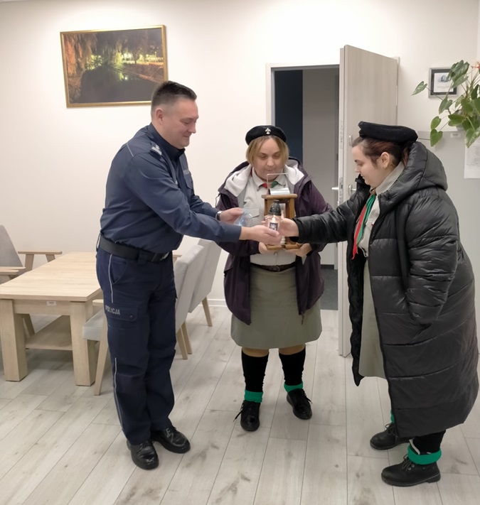 Harcerki złożyły wszystkim policjantom oraz pracownikom cywilnym komendy najserdeczniejsze życzenia zdrowia, szczęścia oraz pomyślności, podkreślając znaczenie codziennej służby na rzecz bezpieczeństwa i lokalnej społeczności. Spotkanie przebiegło w ciepłej, świątecznej atmosferze, niosąc ze sobą przesłanie jedności i nadziei, tak szczególnie ważne w okresie zbliżających się Świąt Bożego Narodzenia.