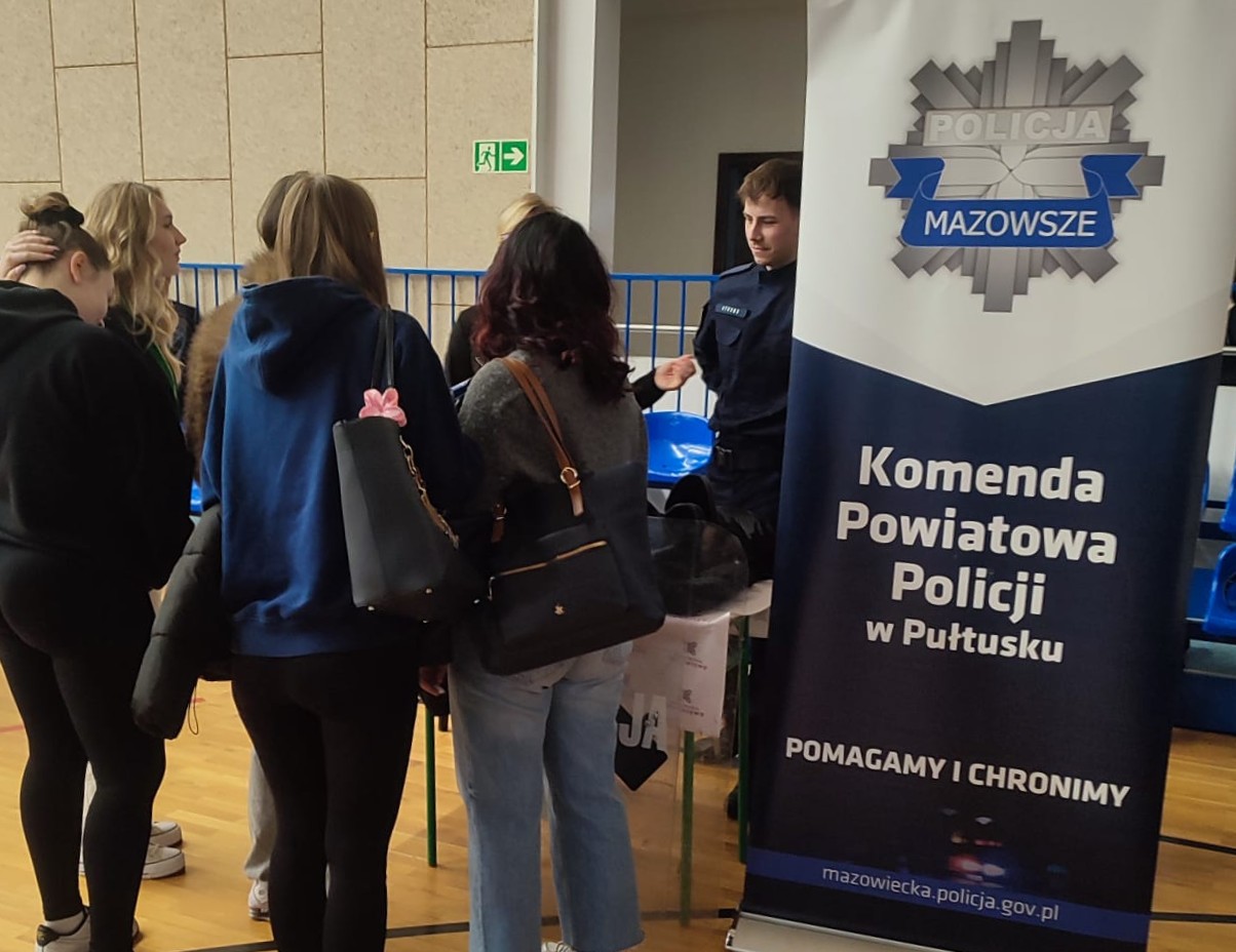 W ramach współpracy, zaproszenie do uczestnictwa w przedsięwzięciu otrzymała również Komenda Powiatowa Policji w Pułtusku. Policjanci oraz starszy referent Wydziału Kard i Szkolenia przygotowali stoisko informacyjne dla osób zainteresowanych wstąpieniem w szeregi Policji. Zapoznawali odwiedzających z ofertą służby w Policji, informowali m.in. o procesie rekrutacji, terminach przyjęć oraz opowiadali o specyfice służby i możliwościach rozwoju zawodowego. Zainteresowani otrzymali ulotki informacyjne, mieli także możliwość rozmowy z funkcjonariuszami o codzienności w "niebieskim mundurze".