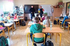 Wszystkim nam zależy, aby nasze dzieci były świadome zagrożeń, jakie na nich czyhają w drodze do szkoły, w szkole, w domu, czy też w kontaktach z rówieśnikami. W ramach działań profilaktycznych policjanci Komendy Powiatowej Policji w Pułtusku cyklicznie spotykają się z dziećmi i młodzieżą. W rozmowie z uczniami 2 klasy Zespołu Placówek Oświatowych w Winnicy, funkcjonariusze zwracali uwagę przede wszystkim na przestrzeganie przepisów ruchu drogowego, które mają bezpośredni wpływ na bezpieczeństwo dzieci poruszających się po drogach. Przypomnieli, czego nie wolno robić na drodze, jak prawidłowo należy przechodzić przez przejście dla pieszych i którą stroną drogi iść, gdy nie ma chodnika. Mundurowi podkreślali jak ważne jest korzystanie z elementów odblaskowych. Przypomnieli także numer alarmowy do służb, pod który należy zadzwonić po pomoc w razie zagrożenia bezpieczeństwa. Funkcjonariusze Policji przedstawili i omówili zjawisko cyberprzemocy. Dużo uwagi poświęcili także zasadom etyki oraz dobrym praktykom w zakresie bezpiecznego korzystania z technologii informatycznych. Mundurowi wyjaśniali, dlaczego nie należy zamieszczać w sieci swoich danych osobowych oraz przedstawiali zagrożenia płynące z beztroskiego zawierania znajomości internetowych.