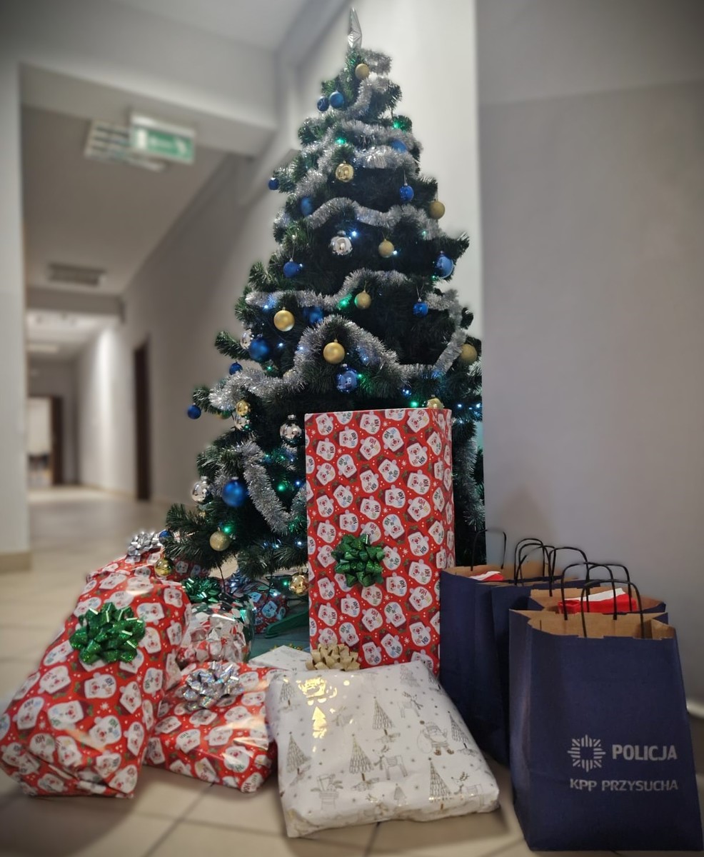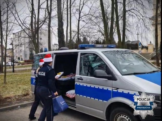 Dzięki współpracy z jednym z ośrodków pomocy społecznej na terenie powiatu przysuskiego funkcjonariusze wytypowali rodzinę znajdującą się w trudnej sytuacji materialnej. Jest to samotna mama wychowująca dwoje dzieci. Policjanci zorganizowali zbiórkę najpotrzebniejszych artykułów oraz drobnych upominków świątecznych, które w Wigilię trafiły do potrzebującej rodziny.