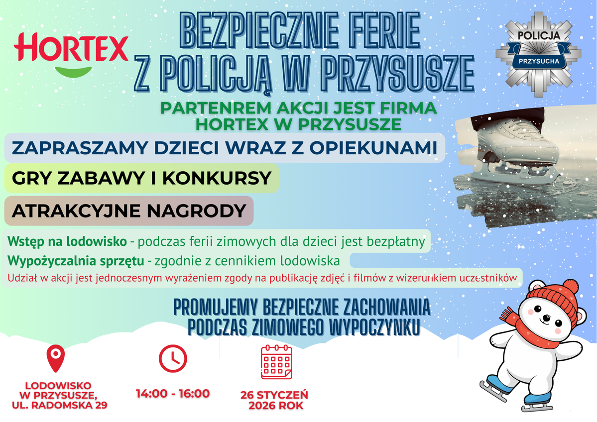Bezpieczne ferie na lodowisku w Przysusze. Zapraszamy!