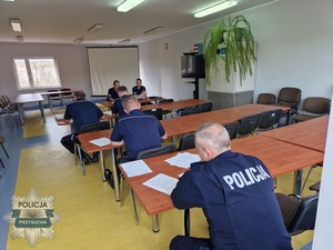 Dzisiaj (19.09) w świetlicy Komendy Powiatowej Policji w Przysusze odbył się I etap "Turnieju służb dyżurnych". Wzięli w nim udział policjanci pełniący służbę na stanowisku Dyżurnego Komendy Powiatowej Policji w Przysusze. Dyżurny, który uzyskał największą liczbę punktów z testu wiedzy przejdzie do II etapu turnieju, który odbędzie się 1 października.