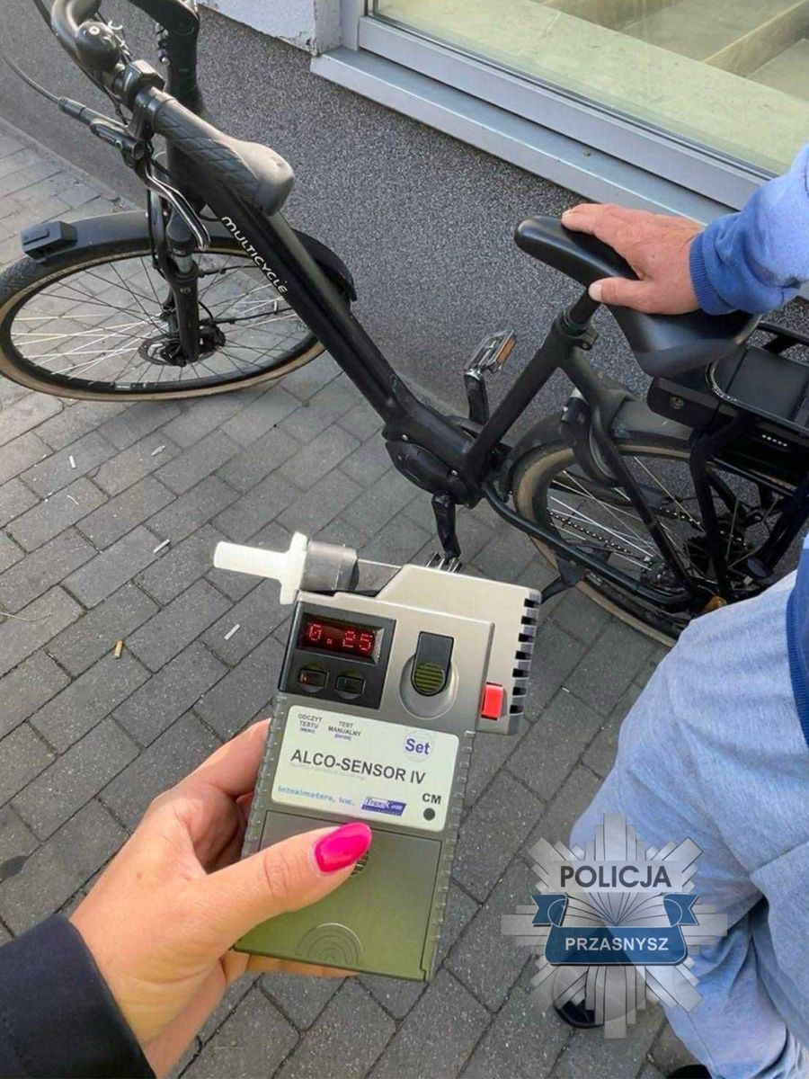 Tego samego dnia o godz. 14:35 na ul. Sosnowej w Przasnyszu funkcjonariusze przasnyskiej drogówki zatrzymali do kontroli drogowej rowerzystę, którego tor jazdy wskazywał, że kierujący może znajdować się pod wpływem alkoholu. Badanie alkomatem wykazało, że 61 – letni mężczyzna miał ponad 1 promil alkoholu w organizmie.