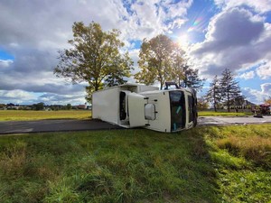 W wyniku zdarzenia 45-letni pasażer pojazdu MAN został przetransportowany do szpitala.