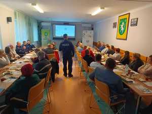 Na wstępie głos zabrał Kierownik Posterunku Policji w Jednorożcu, który przywitał zaproszonych gości oraz uczestników i przedstawił temat debaty. Następnie, w formie prezentacji multimedialnej, omówił najważniejsze informacje dotyczące stanu bezpieczeństwa mieszkańców Gminy Jednorożec w okresie od stycznia 2023 roku do grudnia 2025 roku. Przybliżył również funkcjonowanie Krajowej Mapy Zagrożeń Bezpieczeństwa, program „Dzielnicowy bliżej nas” oraz rolę i zadania dzielnicowego.