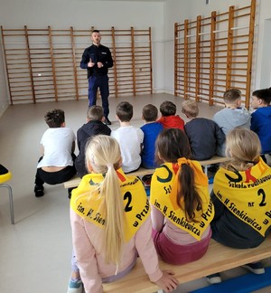 Dziś (13.01) dzielnicowy z Komendy Powiatowej Policji w Przasnyszu, mł. asp. Tomasz Borowy, odwiedził uczniów klas trzecich Szkoły Podstawowej nr 2 w Przasnyszu. Spotkanie poświęcone było zagadnieniom cyberprzemocy, hejtu oraz odpowiedzialności karnej nieletnich.