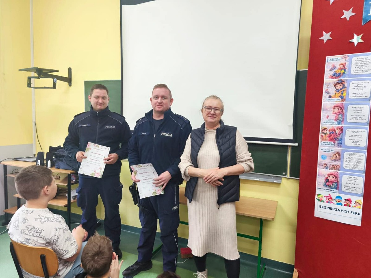 Ferie zimowe to dla dzieci i młodzieży okres wypoczynku i zabawy. Aby ten czas był bezpieczny, przasnyscy policjanci przed rozpoczęciem zimowego wypoczynku, prowadzą działania edukacyjne w szkołach na terenie powiatu przasnyskiego. Przypominają najmłodszym o podstawowych zasadach bezpieczeństwa.