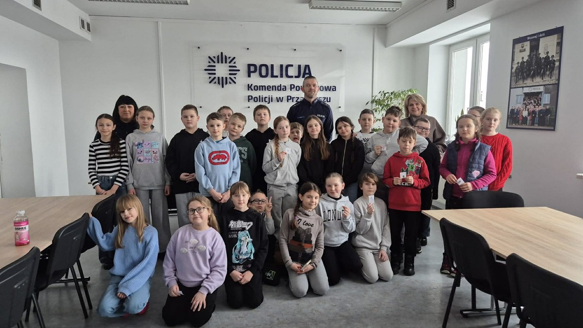 Uczniowie Szkoły Podstawowej nr 2 w Chorzelach odwiedzili Komendę Powiatową Policji w Przasnyszu. Wizyta była okazją do poznania codziennej służby policjantów oraz zasad bezpieczeństwa, w tym odpowiedzialności nieletnich i zagrożeń związanych z Internetem.