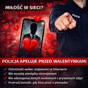 Zbliżające się Walentynki to czas, kiedy wiele osób szuka bliskości i nowych znajomości. Niestety, to również okres wzmożonej aktywności oszustów działających metodą „na miłość”. Przasnyscy policjanci przypominają, na czym polega ten proceder i jak nie stać się jego ofiarą.