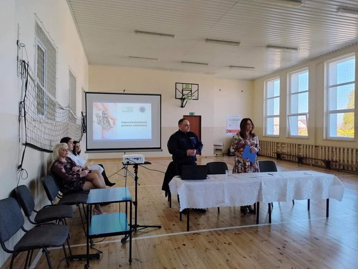 W trakcie prelekcji policjant przybliżył rodzicom zagadnienia związane z odpowiedzialnością nieletnich w świetle obowiązujących przepisów prawa. Omówiono między innymi kwestie dotyczące odpowiedzialności karnej nieletnich oraz konsekwencji, jakie mogą wynikać z nieodpowiedzialnych i ryzykownych zachowań.