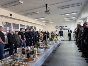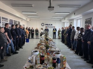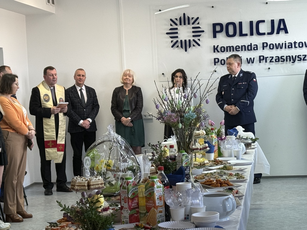O prawdziwie świąteczny nastrój zadbał Kapelan Komendy Powiatowej Policji w Przasnyszu Ks. Michał Gaszczyński, który przeprowadził krótką modlitwę oraz poświęcił symboliczne wielkanocne potrawy. Była to również okazja do krótkiej refleksji nad wartościami, jakie niesie ze sobą ten wyjątkowy czas w roku.