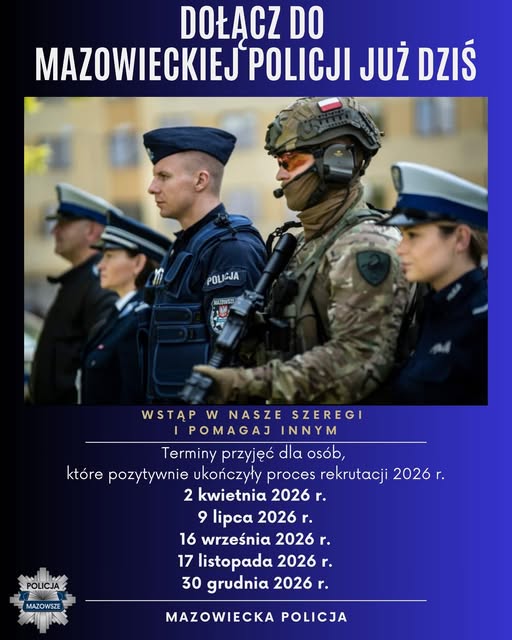Nabór do służby w Policji w 2026r. Data publikacji 20.03.2026 Powrót Drukuj Ogłoszenie Komendanta Wojewódzkiego Policji zs. w Radomiu o doborze do służby w Policji w 2026r. W tym roku pierwszy nabór planowany jest 2 kwietnia. Pliki do pobrania ogloszenie_o_doborze_do_sluzby_w_Policji_w_2026 250.03 KB Pliki do pobrania ogloszenie_o_doborze_do_sluzby_w_Policji_w_2026 250.03 KB