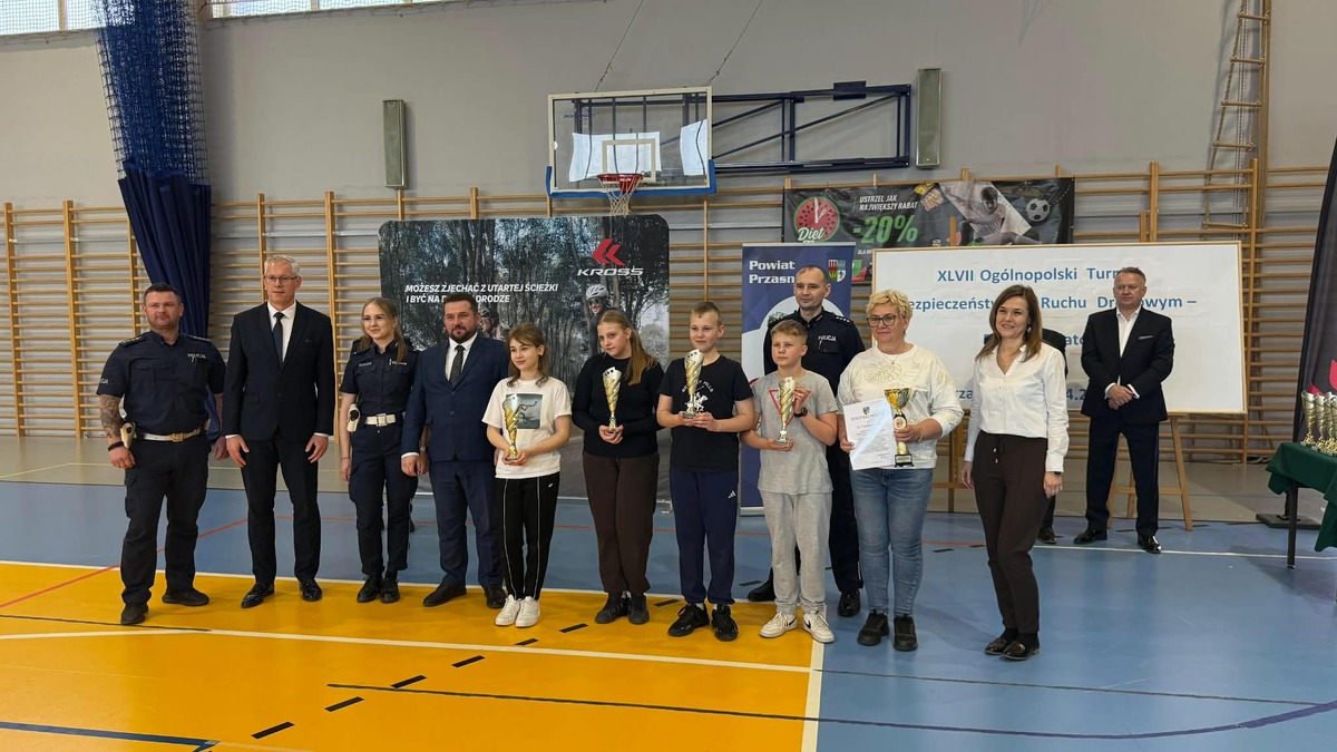 Dzisiaj (10.04) uczniowie szkół podstawowych powiatu przasnyskiego mieli okazję uczestniczyć w kolejnej edycji Ogólnopolskiego Turnieju Bezpieczeństwa w Ruchu Drogowym. Gospodarzem tegorocznego turnieju była Szkoła Podstawowa nr 3 w Przasnyszu. Uczniowie szkół podstawowych, podzieleni na dwie kategorie wiekowe, mieli do rozwiązania dwa testy wiedzy z zakresu zasad i przepisów ruchu pieszych, osób poruszających się przy użyciu urządzenia wspomagającego ruch, rowerzystów, hulajnóg elektrycznych, urządzeń transportu osobistego, motorowerzystów, znaków drogowych i sytuacji w ruchu drogowym (pierwszeństwo na skrzyżowaniu). Poprawne rozwiązanie testów wymagało szczegółowej wiedzy i przygotowania.